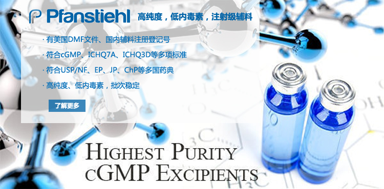 “熱烈祝賀Pfanstiehl的注射級(jí)甘氨酸Glycine(G-140)喜獲CDE登記號(hào)F20250000403, 這是Pfanstiehl產(chǎn)品獲得的第18個(gè)CDE登記號(hào)!”甘氨酸在醫(yī)藥輔料制劑中應(yīng)用廣泛,, 可作為緩沖劑,增溶劑,穩(wěn)定劑等,具有諸多優(yōu)勢(shì)。Pfanstiehl秉承一貫高品質(zhì)理念,為滿(mǎn)足全球生物制藥行業(yè)對(duì)于高品質(zhì)甘氨酸的需求,隆重推出的注射級(jí)甘氨酸Glycine (G-140), 具有超高純度,超低內(nèi)毒素,超低金屬殘留的特點(diǎn),單獨(dú)檢測(cè)29種金屬離子,并且新增DNA,RNA,DNA酶,RNA酶和脂肪酶,亞硝酸鹽等多項(xiàng)質(zhì)量指標(biāo)的檢測(cè),符合多國(guó)藥典規(guī)定(USP, EP, BP, JPE, ChP),可用于生物治療性藥物和疫苗的生產(chǎn)。產(chǎn)品信息:· 產(chǎn)品名稱(chēng):Glycine, High Purity, Low Endotoxin, Low Metals, USP, EP, BP, JPE, ChP (G-140)· 中文名稱(chēng):甘氨酸· 分子式:C2H5NO2· 分子量:75.07 g / mol· CAS號(hào):56-40-6· 產(chǎn)品貨號(hào):G-140產(chǎn)品特點(diǎn): · 超高純度,超低內(nèi)毒素,超低微生物含量,超低金屬雜質(zhì)殘留· 質(zhì)量指標(biāo)新增DNA,RNA,DNA酶,RNA酶,脂肪酶和亞硝酸鹽檢測(cè)· 符合多國(guó)藥典:USP, EP, BP, JPE, ChP· 符合ICH Q3D標(biāo)準(zhǔn)· 符合GMP標(biāo)準(zhǔn)· 已獲DMF和CDE登記號(hào) 產(chǎn)品應(yīng)用:· 緩沖劑· 穩(wěn)定劑· 增溶劑如果您對(duì)Pfanstiehl注射級(jí)別Glycine G-140感興趣,歡迎聯(lián)系Pfanstiehl 中國(guó)區(qū)代理商北京西美杰科技有限公司獲得如下詳細(xì)的產(chǎn)品概況說(shuō)明文件和測(cè)試樣品。Pfanstiehl Inc.最新產(chǎn)品系列如下,歡迎聯(lián)系北京西美杰科技有限公司獲取100g裝免費(fèi)樣品。北京西美杰科技有限公司為Pfanstiehl中國(guó)代理,為客戶(hù)提供完善的技術(shù)支持與售后服務(wù)。歡迎撥打西美杰客服電話400-050-4006或者登陸網(wǎng)站www_xmjsci_com.xindalt.com了解更多信息。 更多>